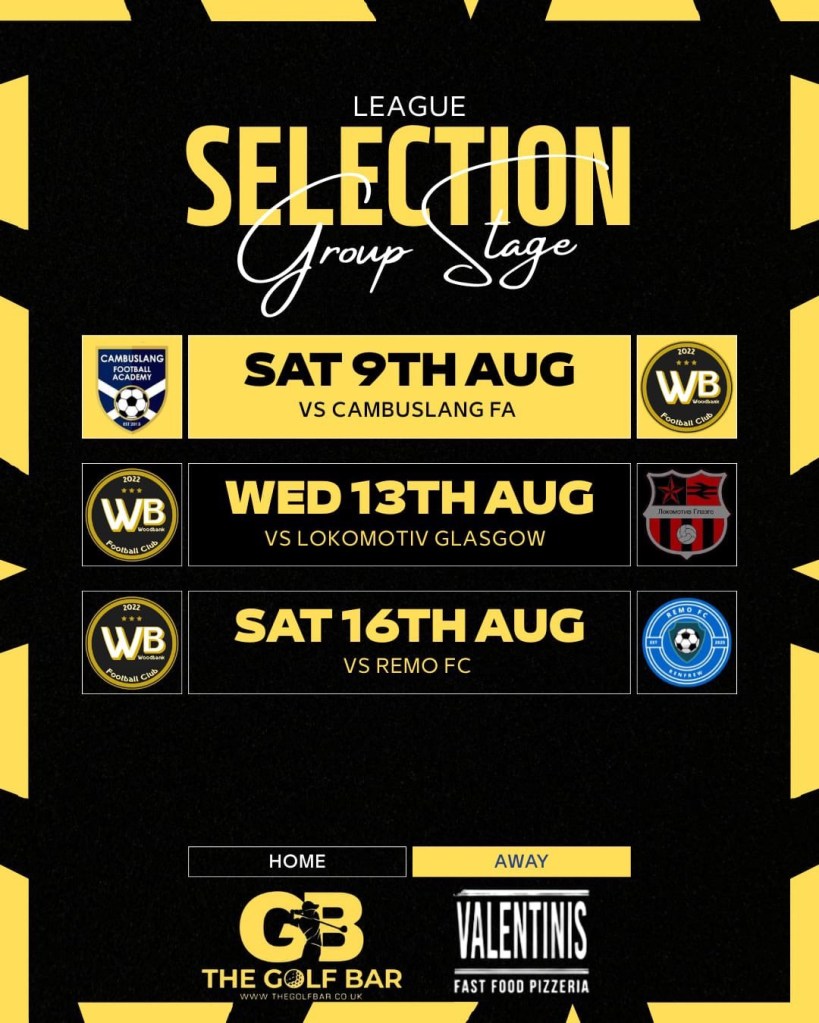 We were drawn into Group A with : Cambuslang FA, Remo FC & Lokomotiv Glasgow