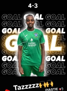 The game was end to end at this point and both teams were going for it but Pollokshields were to get their noses in front when Hastie squared the ball to Taz who beat the keeper with a neaf finish. 4-3 Pollokshields !!!!