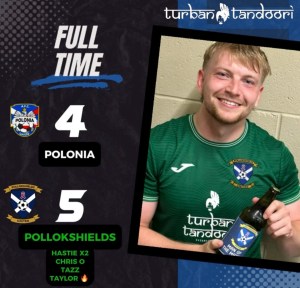 A dramatic game ends in a 4–5 loss to Pollokshields. We created plenty of chances but lacked finishing and made too many mistakes at the back.