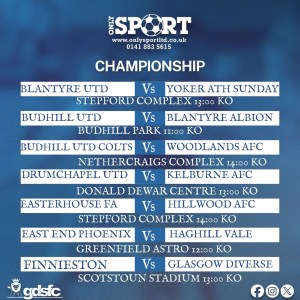 Our Game of the Day sits at 1pm, with Blantyre Utd taking on Yoker Athletic in the Championship at Stepford. That clash promises plenty of bite and should draw a strong crowd.