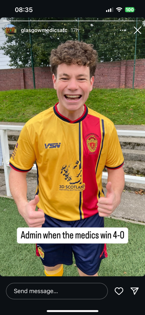 Glasgow Medics must be commended for their efforts as it will be extremely hard to run a competitive team around the shifts that many of their players have to work.
