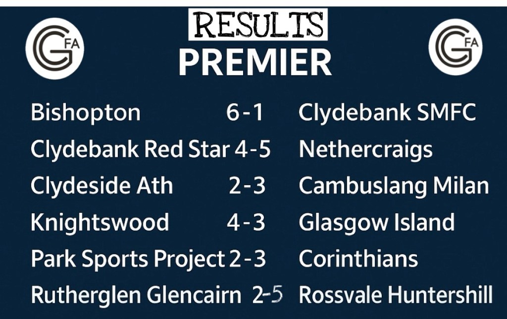 Elsewhere, Knightswood AFC came out on top of another close contest, defeating Glasgow Island 4–3, and Corinthians strengthened their title credentials with a hard-fought 3–2 triumph over Park Sports Project.