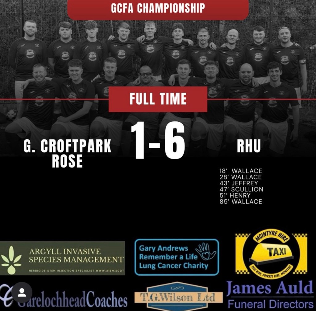Saturday was a day when Kjorstad’s spine of the team really showed up and got the job done. A Hat trick for striker Wallace and goals from centre backs Henry and Scullion was the real icing on the cake for Rhu Colts.