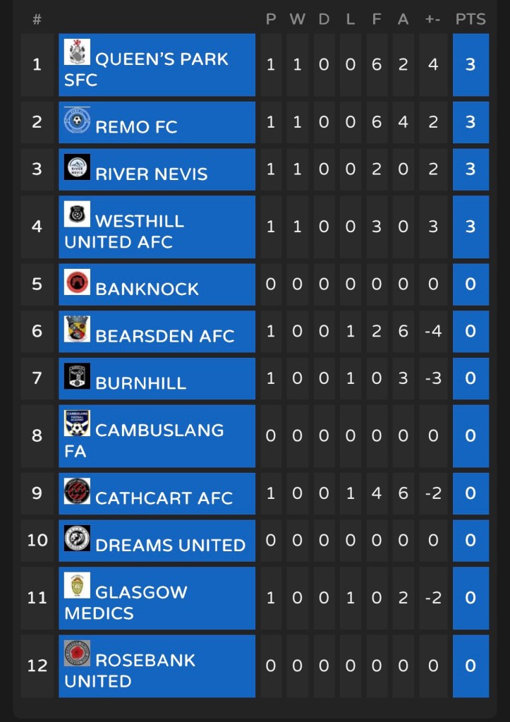 Standing in their way are Remo FC, who have already shown their attacking intent. Their thrilling 6–4 victory over Cathcart AFC, followed by a draw against Woodbank AFC, underlines their firepower up front — but also shows they can be vulnerable defensively. Currently sitting 2nd in the league, just one spot above River Nevis, Remo FC have made their intentions clear: they want to challenge for the top.