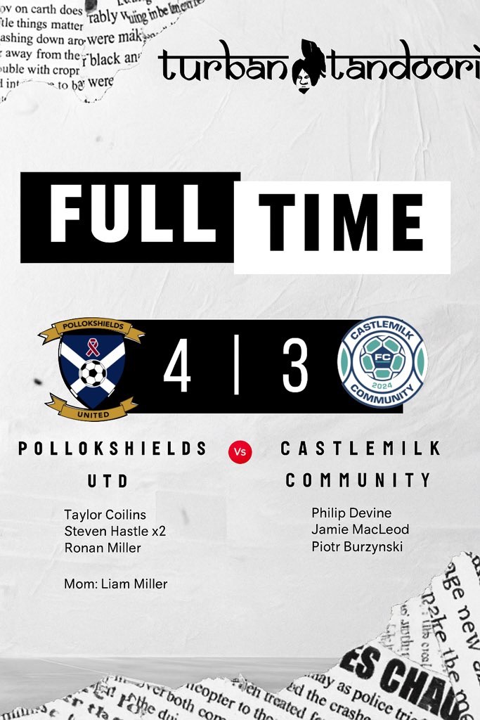 What a rollercoaster at the weekend! Pollokshields kept their unbeaten streak alive with a 4–3 thriller against Community — a match that had absolutely everything.