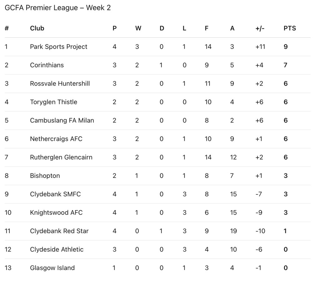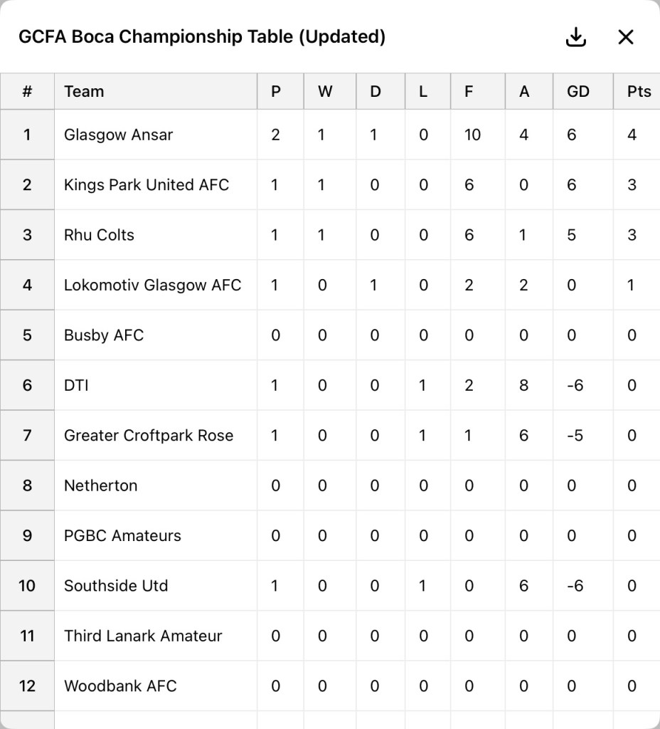 The spotlight first shone on the Premier League as league starts to develop , with all divisions shaped by Scottish Cup action. The Boca Championship brought fresh intrigue as Ansar and Lokomotiv went head-to-head, while the Conference League served up a feast of goals across its fixtures. Every division had its own brand of drama — proof once again that Saturday mornings in Glasgow are thriving.