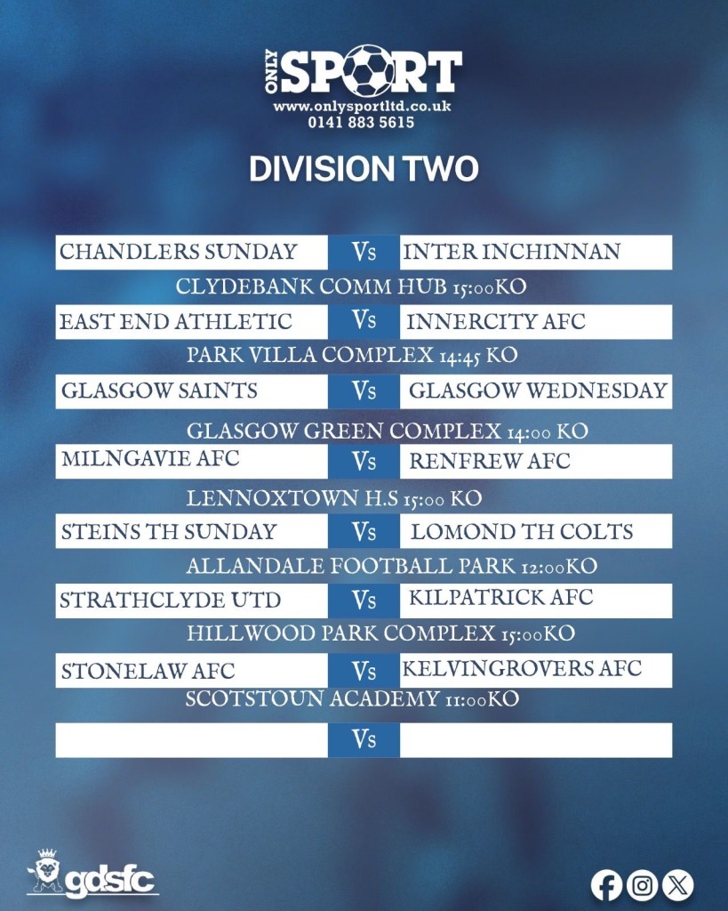 The upcoming fixtures for Division Two are set! Get ready for a day of competitive football. Here’s a look at the matchups and their locations:
