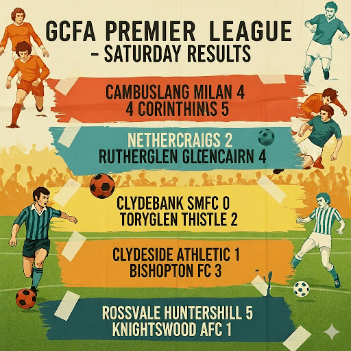 Elsewhere, Rutherglen Glencairn claimed a 4–2 victory over Nethercraigs AFC, while Bishopton FC overcame Clydeside Athletic I 3–1 in another entertaining encounter.