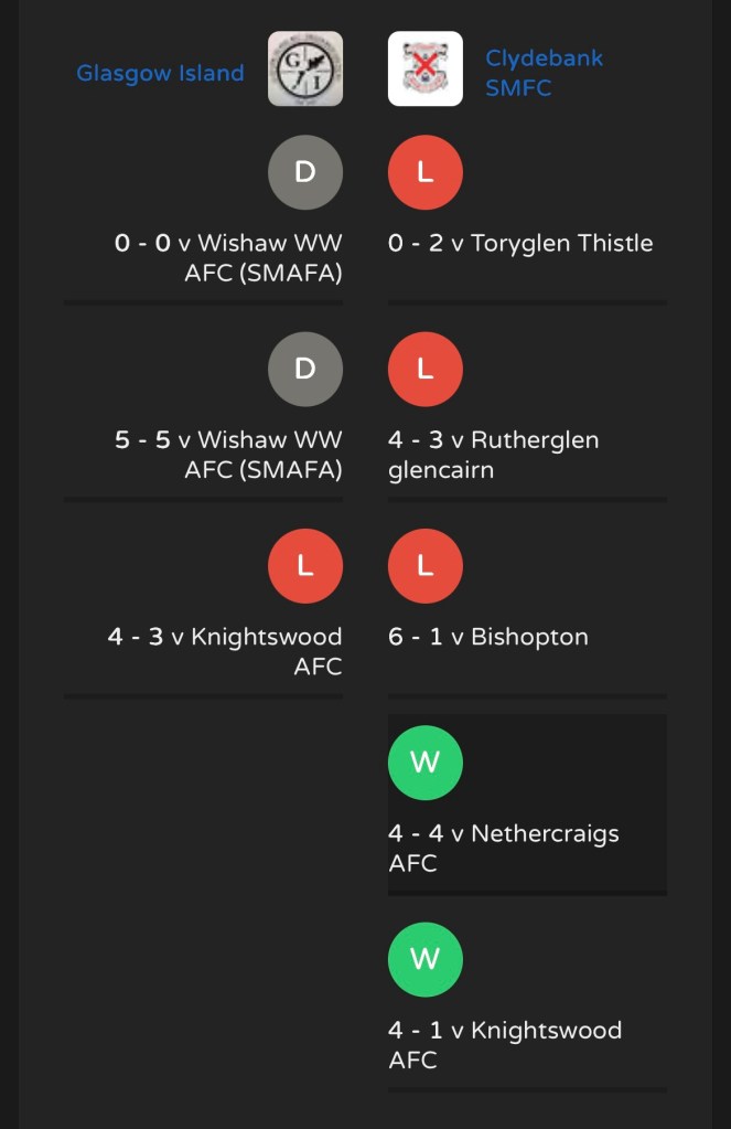 With both sides struggling for consistency, this match could go either way. Glasgow Island will be eager to kick-start their campaign and put points on the board, while Clydebank SMFC will view this as an opportunity to bounce back from consecutive defeats.
