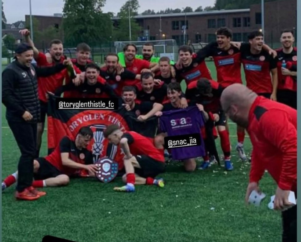 Photo 2 – taken in May 2025 where Toryglen Thistle FC Amateurs won the domestic treble.