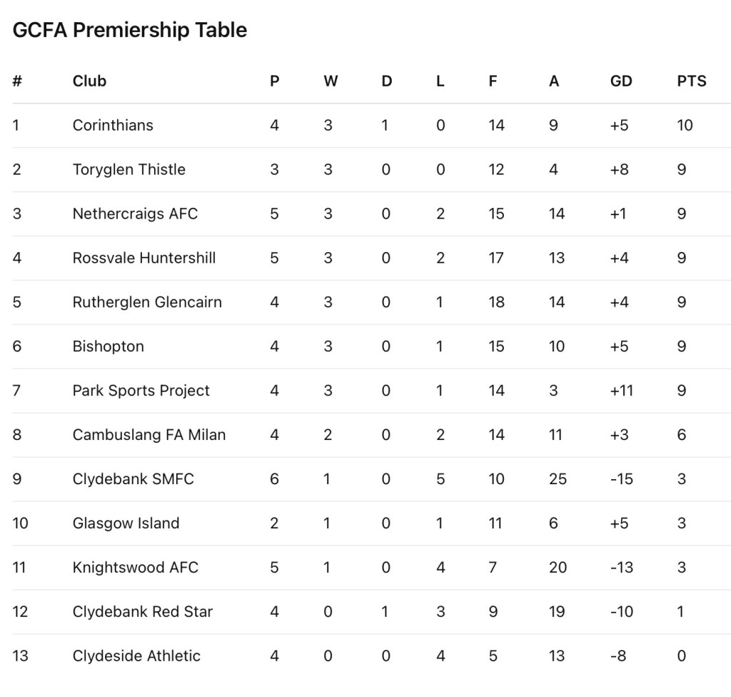 The hosts suffered a setback last time out, going down 3-1 against Red Star Paisley AFC, but their early-season form has been strong enough to keep them at the summit with 10 points from four games. Corinthians remain unbeaten in the league and will see this as a chance to reassert their authority.