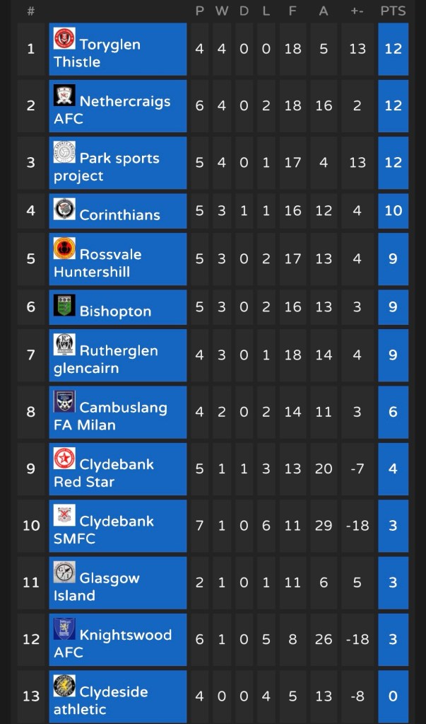 An interesting fixture featuring a team with few games played, Glasgow Island, against one of the league’s early pace-setters, Park Sports Project.