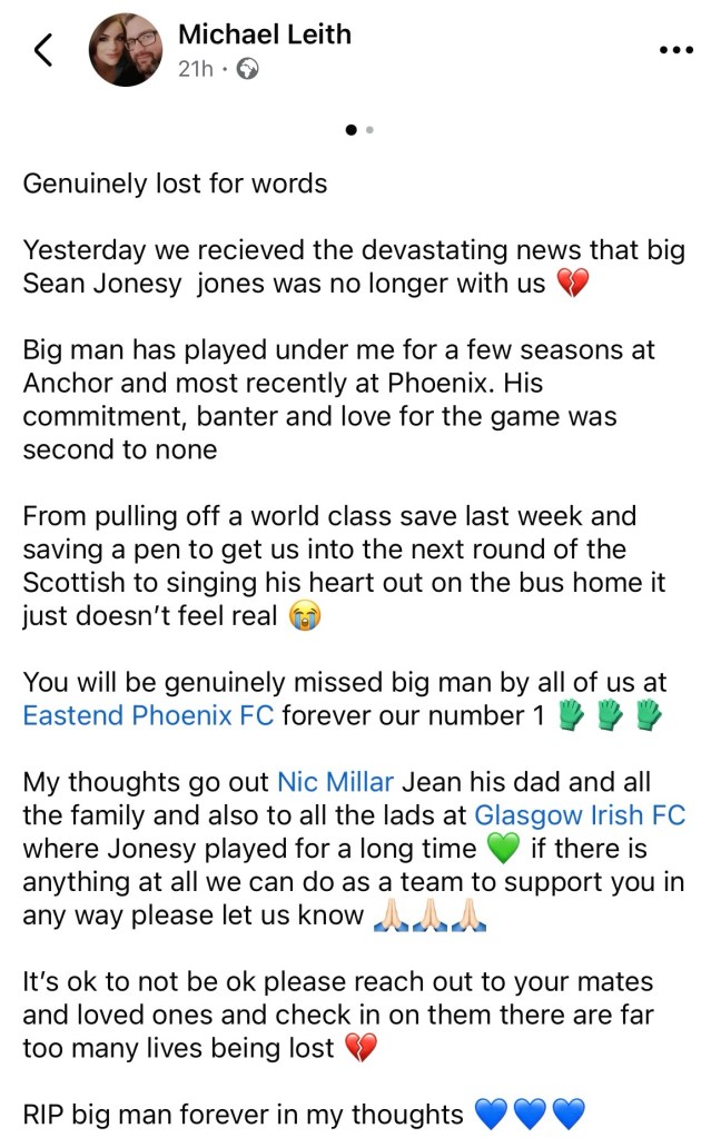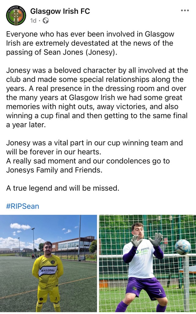 News like this is an extremely hard story to put into words, as the loss is so immense. The outpouring of grief and warm memories from clubs like DTI AFC, Glasgow Irish and Westerlands AFC underscores just how highly regarded Sean was.