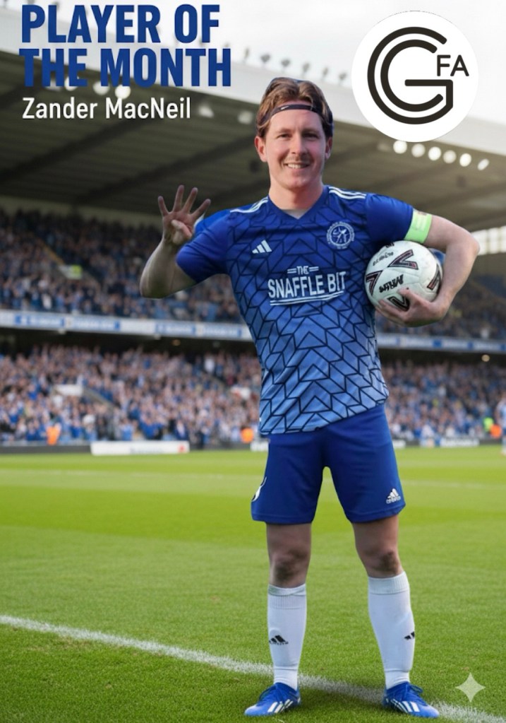 Five goals and a tremendous month of football from Andy rightly see’s him deservedly pick up the GCFA Premier League Player of the Month.
