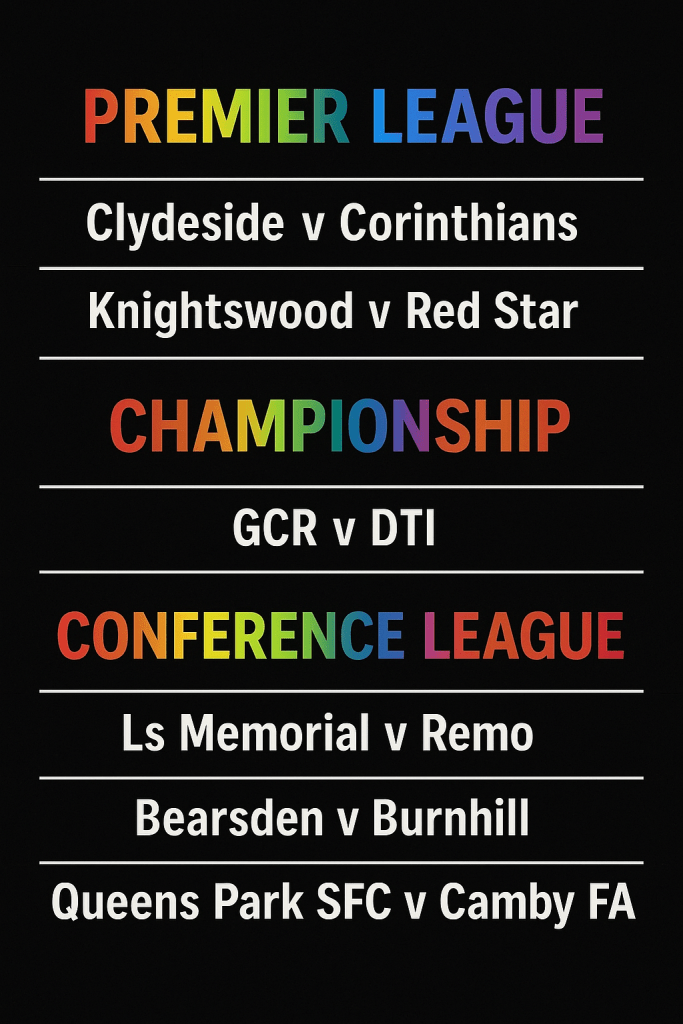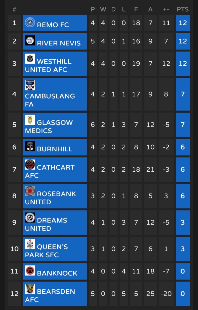 Meanwhile, a massive clash at the foot of the table sees Clydebank Red Star (11th) take on Knightswood AFC (10th). Separated by goal difference and just a couple of points, a victory for either side would be a huge boost as they look to climb away from the relegation zone.