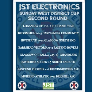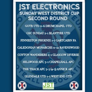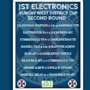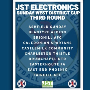 32 clubs remain in the West District Cup heading into Round 3, including strong outfits like Drumchapel Utd, Maryhill Milan, Kilpatrick AFC, Yoker Ath Sunday, and Brighill AFC. There’s also movement over in the East District Cup, where Steins Thistle Sunday and The Norries AFC both booked their spots after hard-fought wins. Plenty of firepower left — and more than a few hoping they don’t draw one another too soon
