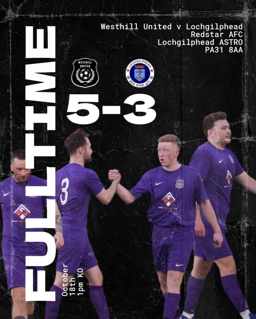 Westhill United faced a tough road trip to face Lochgilphead Red Star but they never let the journey bother them and they walked away with a 5-3 victory.