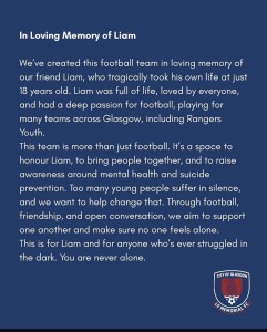 On the west end of Glasgow, LS Memorial FC is more than just a football club—it’s a tribute. Formed in memory of their late friend, Liam Stevenson, who tragically lost his life to suicide, the team plays with a sense of purpose that goes beyond results on the pitch.