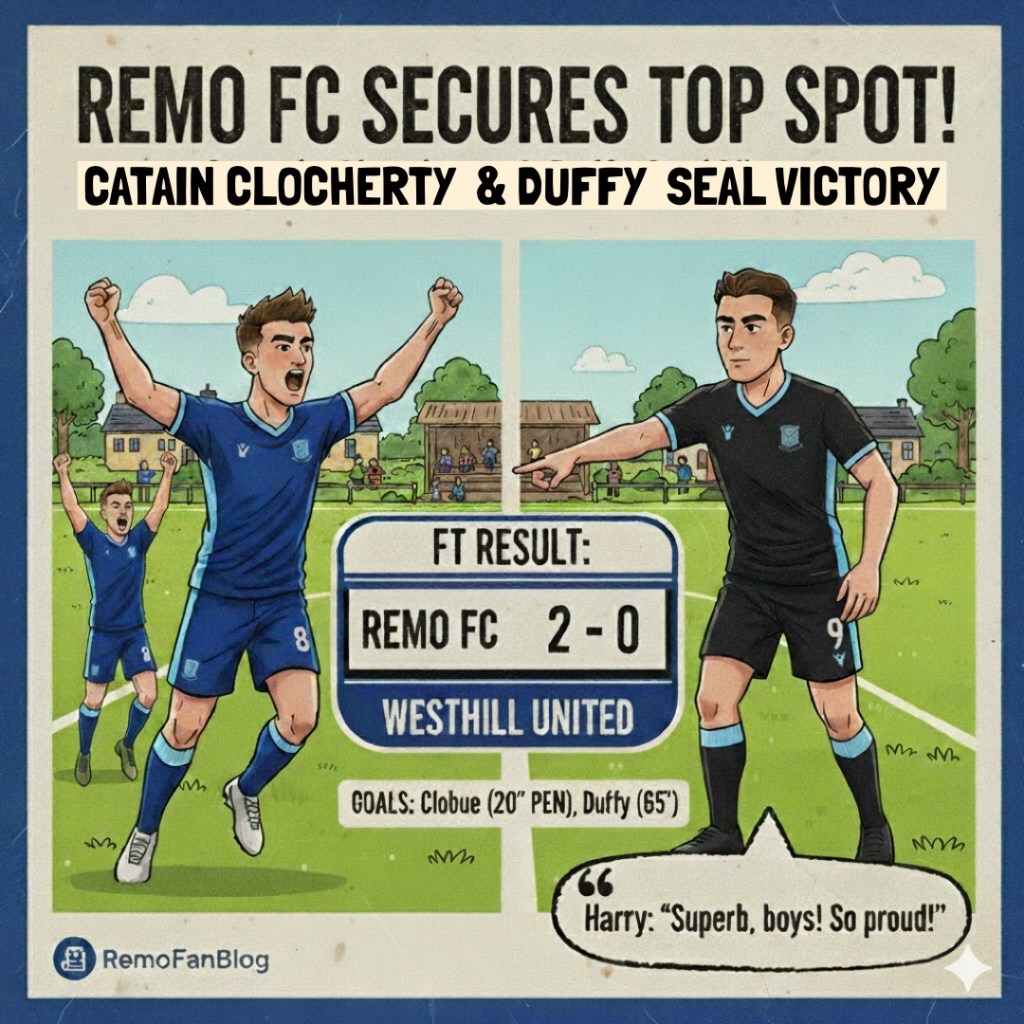 The breakthrough came early in the first half, approximately 20 minutes in, when Remo were awarded a penalty. Skipper Mitchell Clocherty stepped up confidently to convert the spot-kick, putting Remo in control.