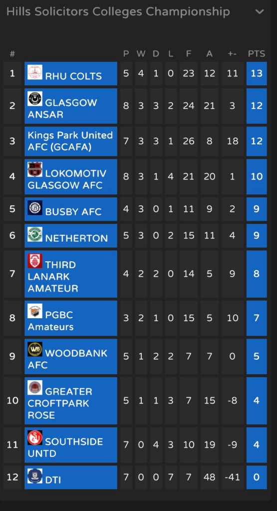 Nethercraigs stay top on 21 points, two clear. Corinthians and PSP both sit on 19 — separated only by goal difference.
