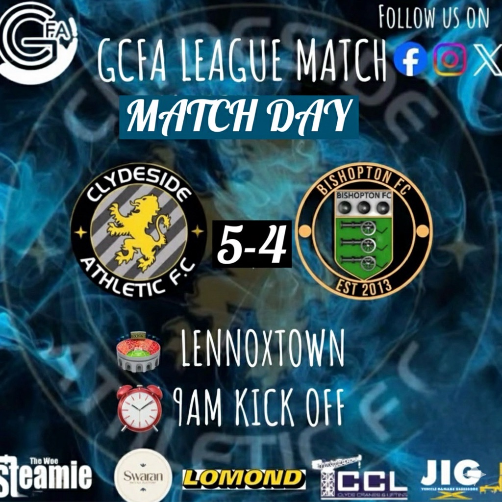 NINE goals. That is the staggering tally from an instant-classic contest that saw Clydeside Athletic edge out Bishopton FC in a breathless 5-4 victory.
