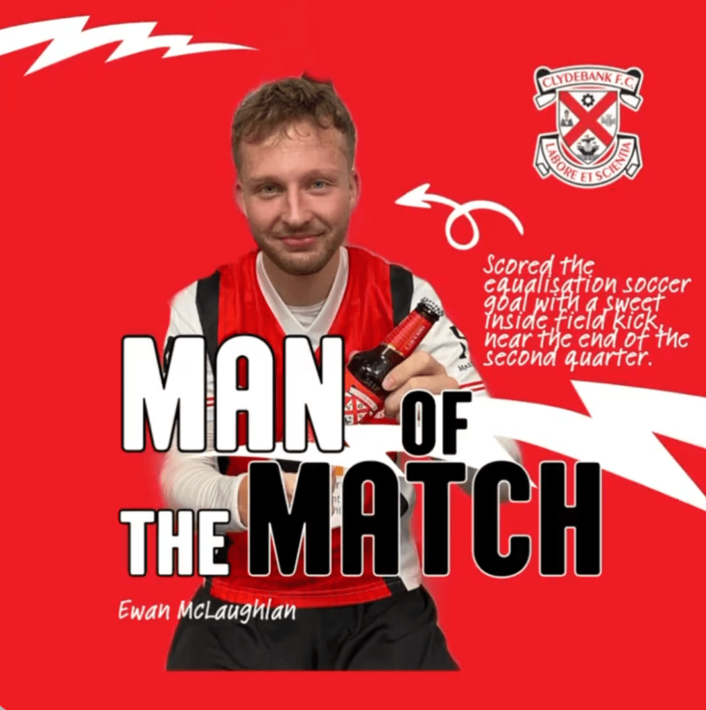 Great to see Jordan shining again after injury! His versatility across the pitch has been massive — and he grabbed a well-deserved goal in our 4–1 victory over Bearsden