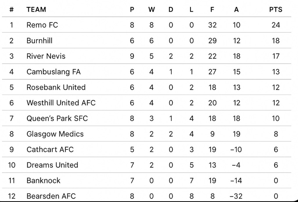 A steady set of Conference fixtures. Remo extend their run, Cathcart take a good away result, and Burnhill v Medics produced one of the day’s closest games. Two fixtures were postponed.
