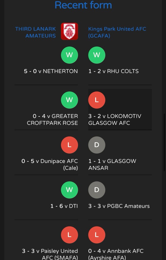 It’s experience versus momentum, stability versus hunger. Kings Park may have the résumé, but Third Lanark Amateurs have the story—and right now, that story feels like it’s building to a twist. By the tightest of margins, they’ll jolt the league table and make everyone above them feel a little less comfortable.”