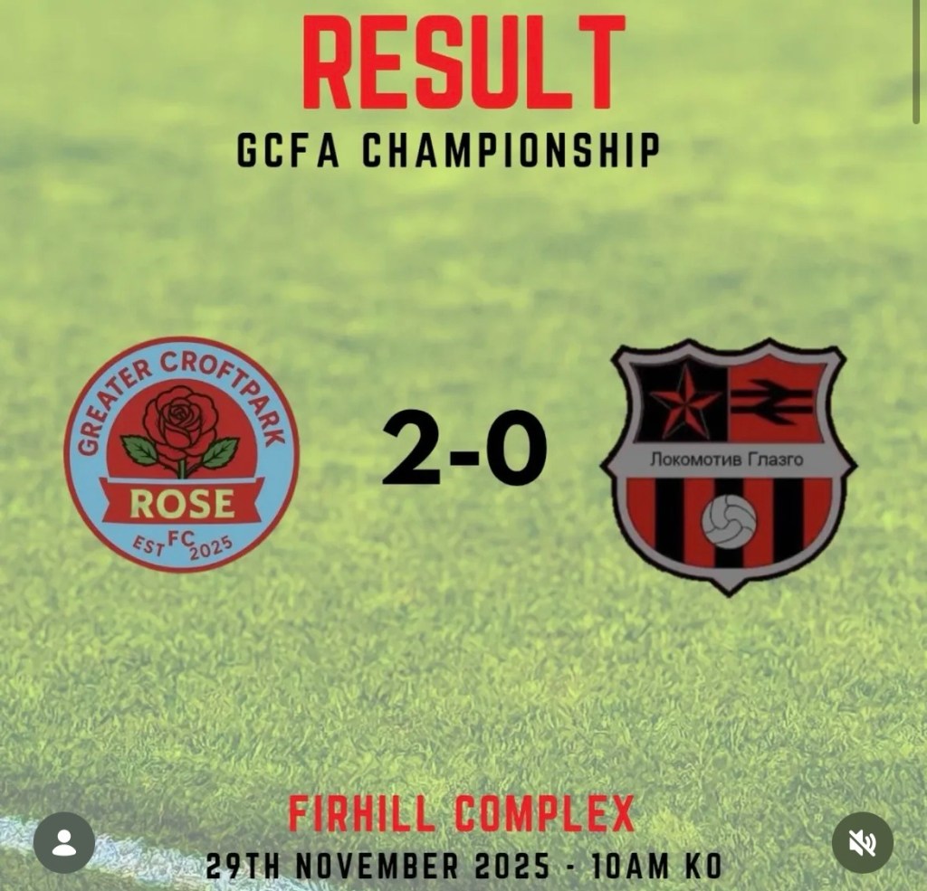 FT – Greater Croftpark Rose 2 Lokomotiv Glasgow 0