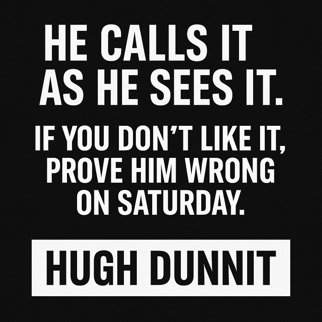 Banknock AFC ripped up Hugh’s predictions and wrote the truth themselves. Three goals, three points — and one pundit firmly put back in his box. But at least he’s never afraid to say what he thinks. Well played, Banknock.