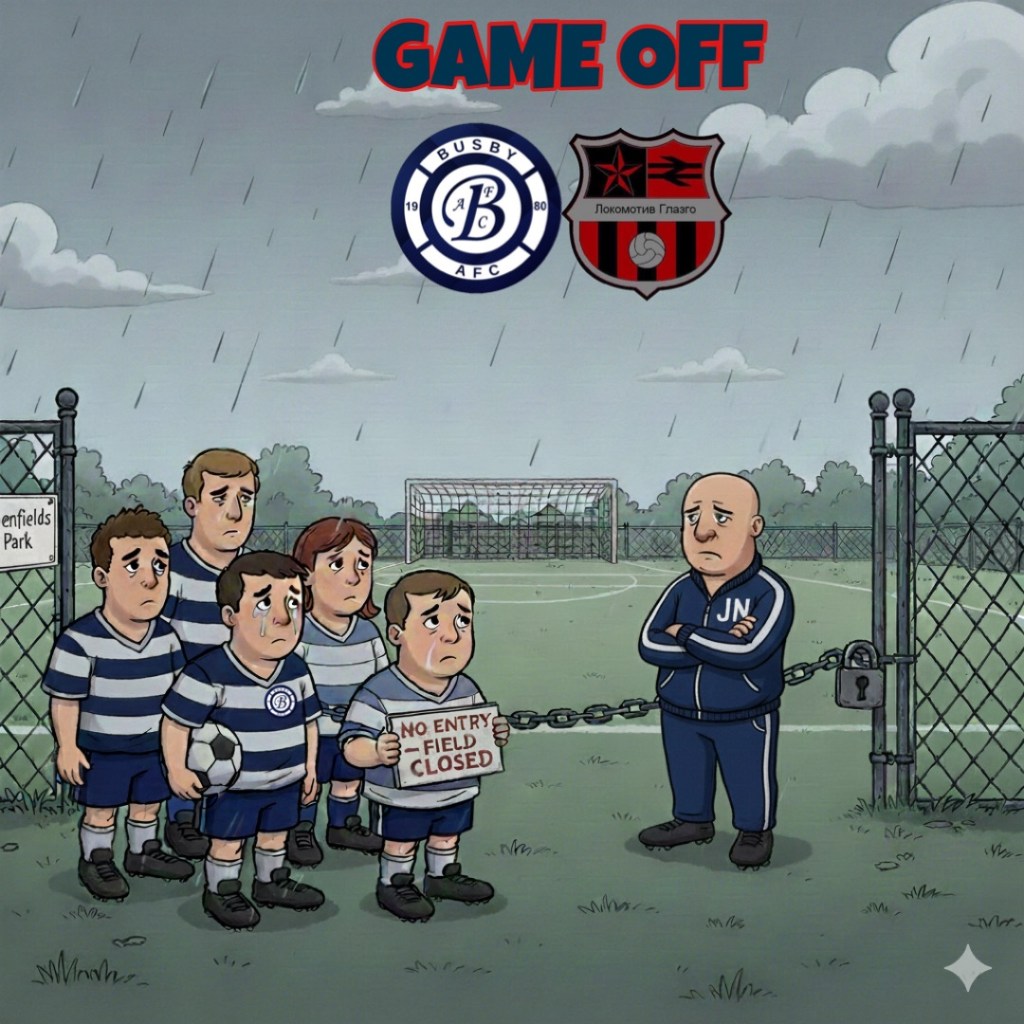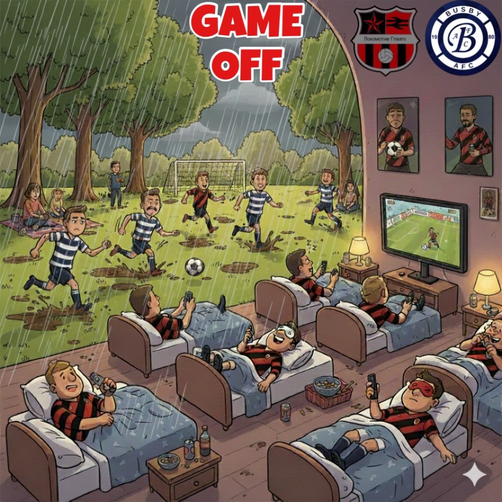 While Lokomotiv Glasgow were likely checking the rain gauge and humming a triumphant tune, Busby AFC was frantically working the phones like a desperate Tinder matchmaker, offering a rotating carousel of solutions just to get the ball rolling.