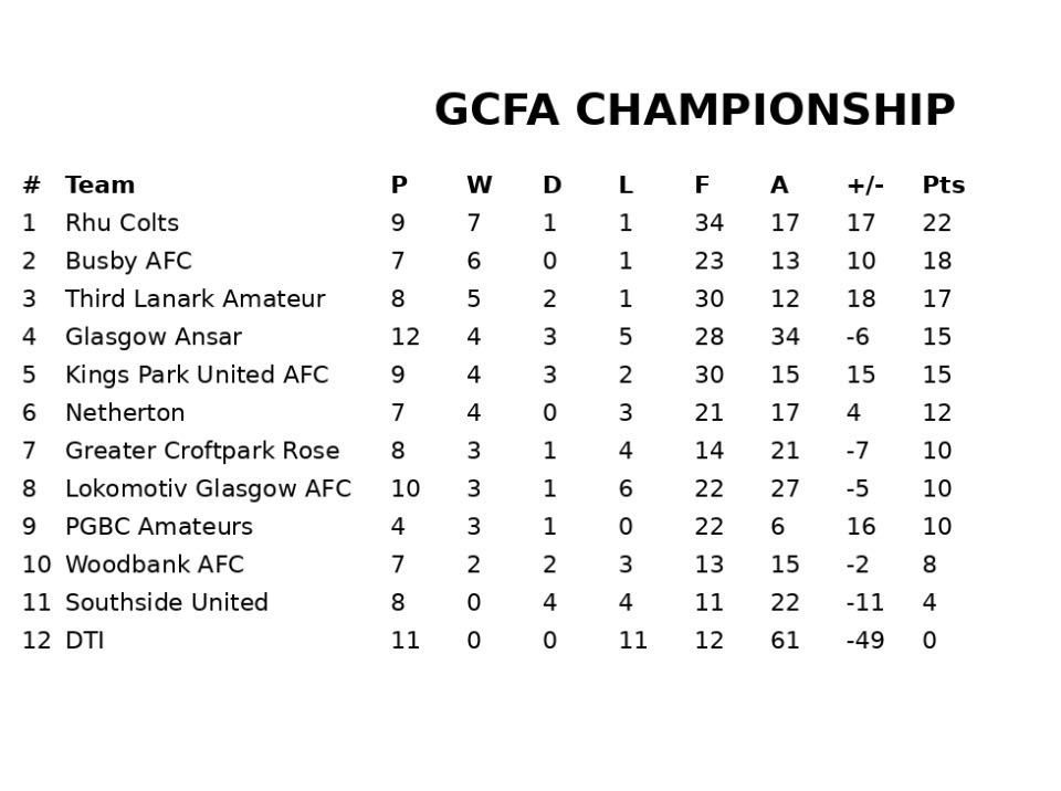LEAGUE TABLE