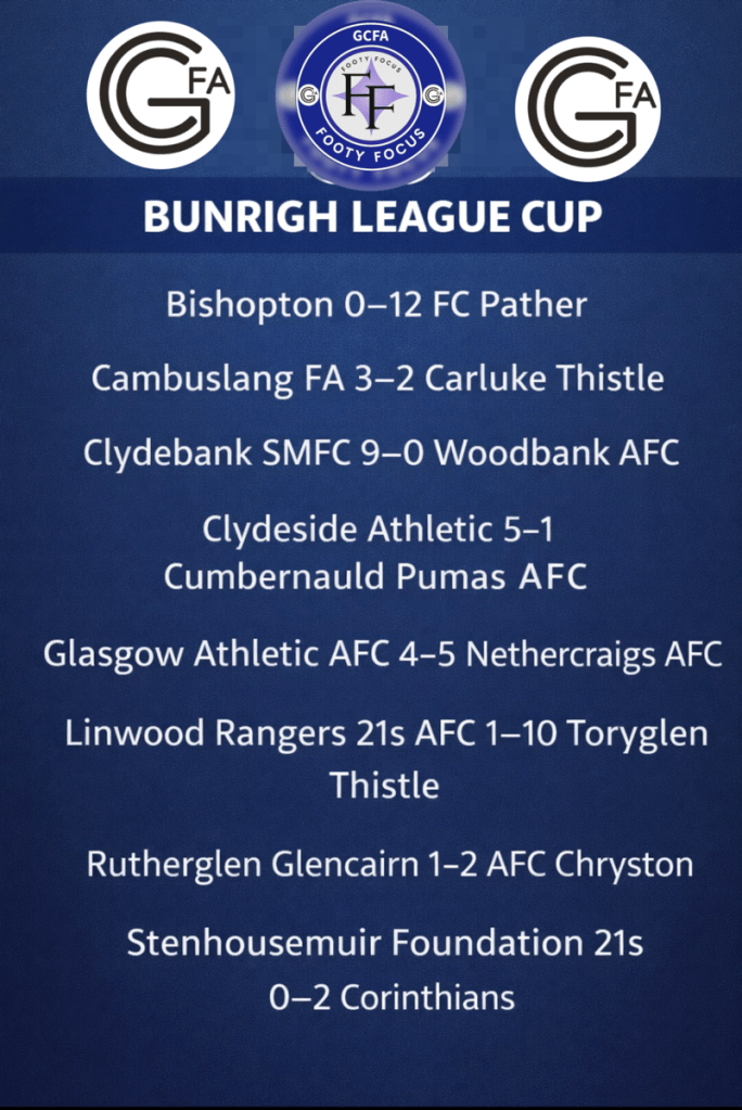 High-scoring games were a theme elsewhere. Third Lanark’s 12–0 win over DTI was the standout result, while Knightswood’s 6–1 away victory underlined a strong showing in the Premier Division.