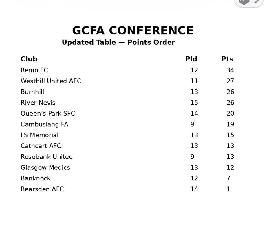 Queen’s Park SFC v Westhill United AFC isn’t a headline grabber, but it’s quietly one of the more interesting fixtures on the card. Westhill sit second on 27 points from 11 games, while Queen’s Park are fifth with 20 from 14. A win for Westhill keeps them within touching distance of Remo at the top. A win for Queen’s Park narrows that gap and pulls them closer to the teams above. Not dramatic — just one of those games that nudges the table either way.