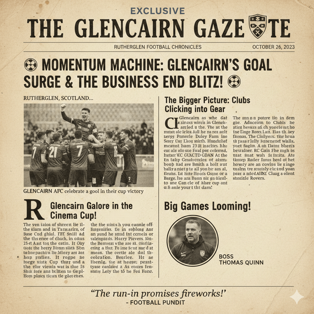 For Glencairn, there’s no time to pause. This Saturday brings a West of Scotland Cup tie against Roselle Rovers — another opportunity to build on recent performances, but also a serious test.