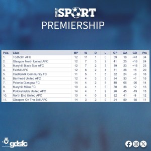 Glasgow North win → 27 pts North End win → 15 pts (moves into mid-pack)