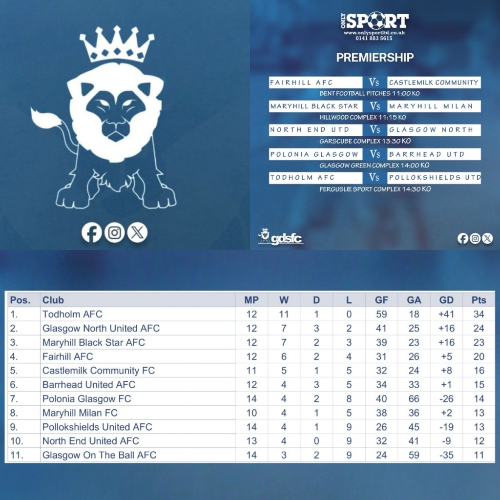 Todholm win → 37 pts from 13 Pollokshields win → 16 pts