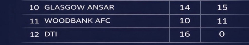 Netherton’s 9–0 win over DTI significantly boosts their goal difference and moves them level on points with Croftpark despite having played one fewer game.