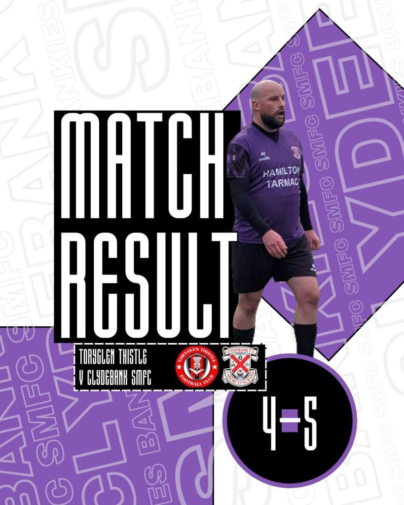 🔥”Clydebank SMFC delivered a shock by defeating pre-match favourites Toryglen Thistle with an impressive 5-4 victory in what was described as a close contest.