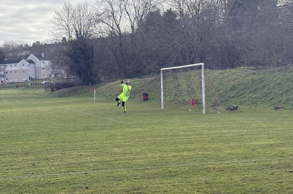 Giffnock’s pressure continued and Willie again made his mark on the game. After great pressing and tackling to win possession, he unleashed an unstoppable strike from around 30 yards that flew into the net. 3–0 Giffnock.