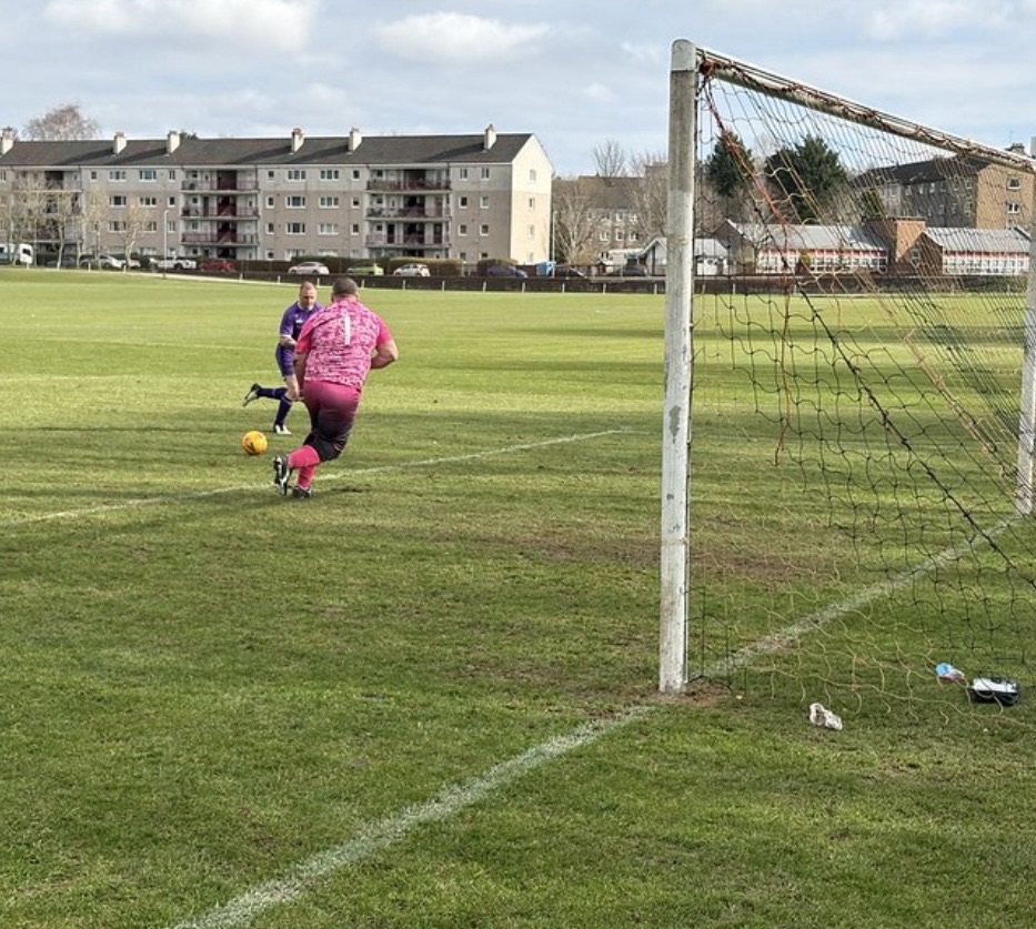 The home side did get their second soon after. Marty, with time and space, threaded a through ball to Kev, who showed great composure to produce a lovely chipped finish over the keeper. 2–0 Giffnock.