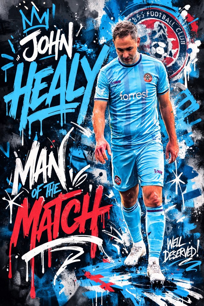 The central defender was top drawer from start to finish, organising the back line and reading the game superbly. Although he was unfortunate to be involved in the penalty incident, Healy showed real character to bounce back immediately and remain a key figure in the club’s victory.