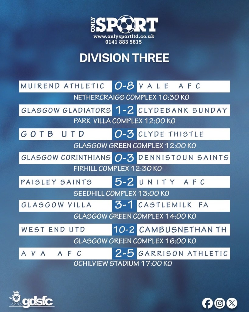 Vale remain top on points and continue to collect results, but the difference in games played across the top four keeps the table o pen. Castlemilk’s position, with fewer matches completed, remains the one that can still shift the standings as fixtures are played.
