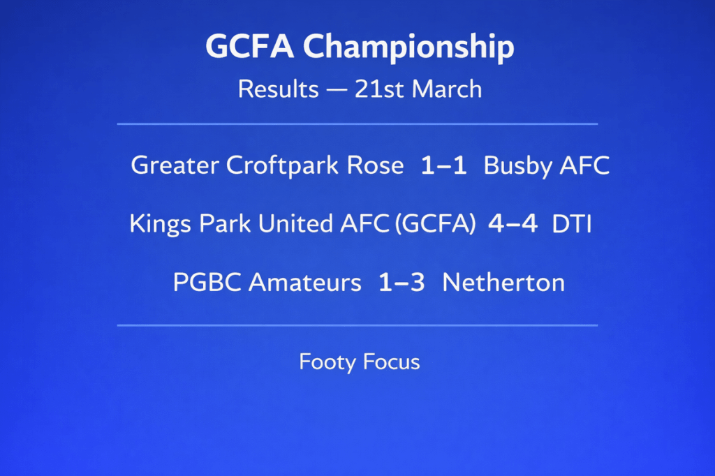 Busby’s draw with GCR Flings may prove costly in the context of the title race. Dropping points at this stage opens the door for rivals, and what looked like a steady charge toward the title now has a hint of uncertainty. It’s not over by any means, but the pressure has definitely increased.
