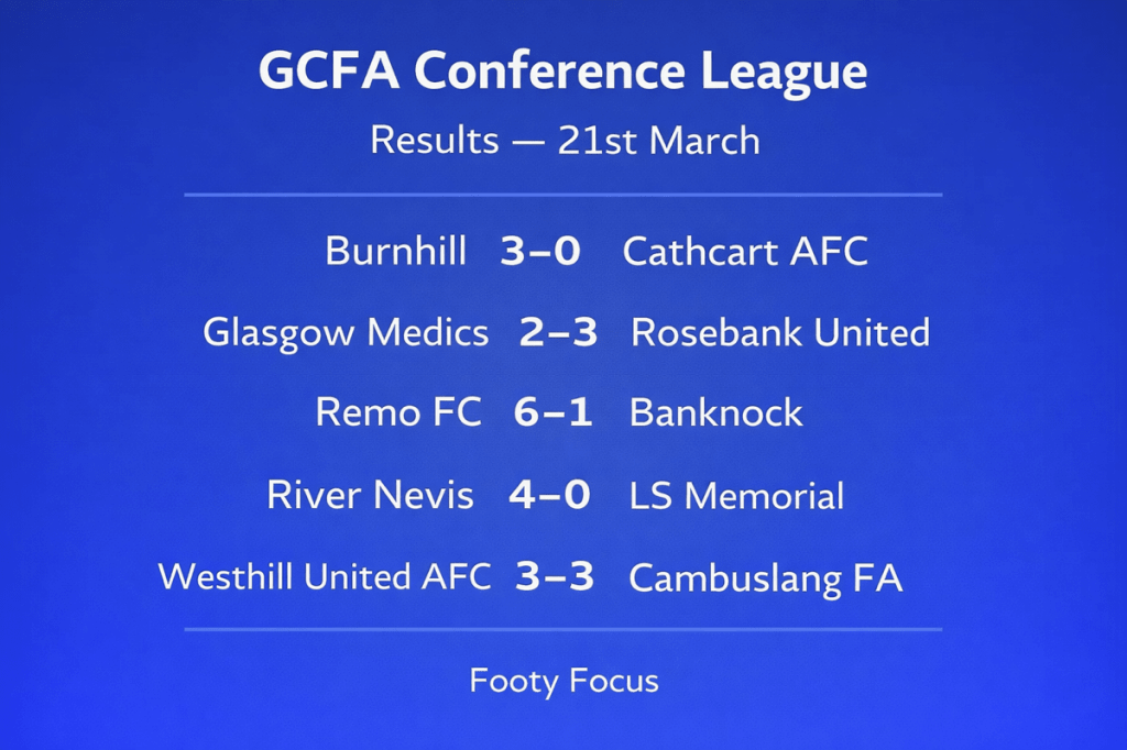 The standout result of the weekend undoubtedly came from Glasgow Island, who pulled off a huge victory over reigning champions Corinthians. It’s the kind of result that not only boosts confidence within the squad but also sends a message across the league. Beating the champions is never just about three points — it’s a marker of intent. Glasgow Island look like a side peaking at exactly the right time, and if they can build on this, they could become serious contenders in the run-in.