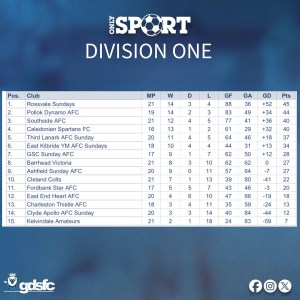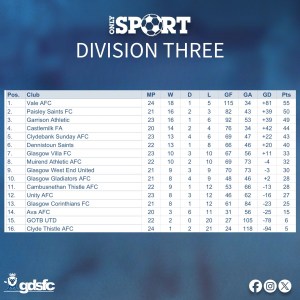 Paisley Saints are on 50 with three games in hand. Garrison sit just behind on 49.