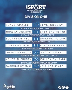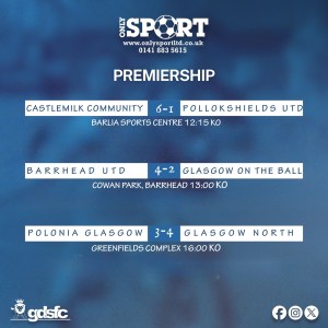 Behind them, Glasgow North hold second on 30. Maryhill Black Star sit a point back with a game in hand.
