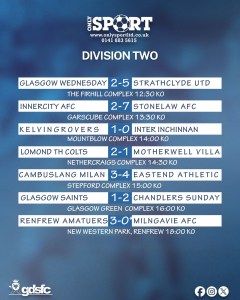 Castlemilk FA and Clydebank Sunday remain in the chasing group in the low 40s.