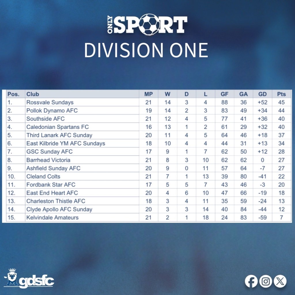Pollok Dynamo sit one behind on 44 — with two games in hand.