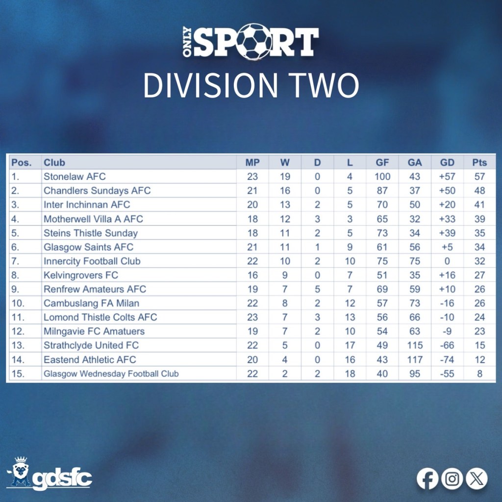 Frank Stat – • Top points: 57 (Stonelaw) • Closest challenger: Chandlers — 48 (2 games in hand)
